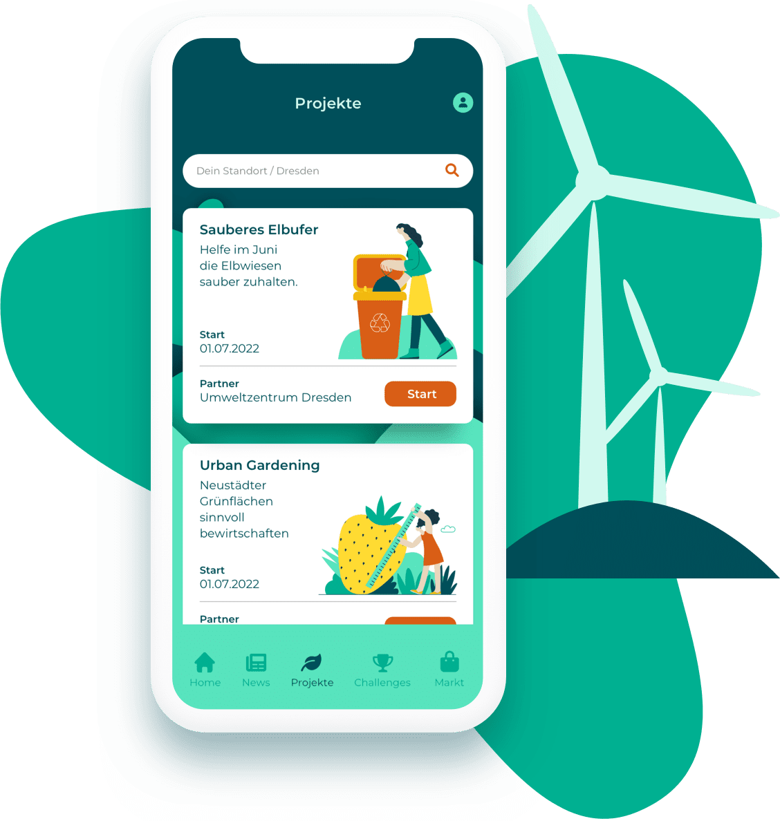 - Community: Entdecke Nachhaltigkeits-Projekte in der Region zum Mitmachen